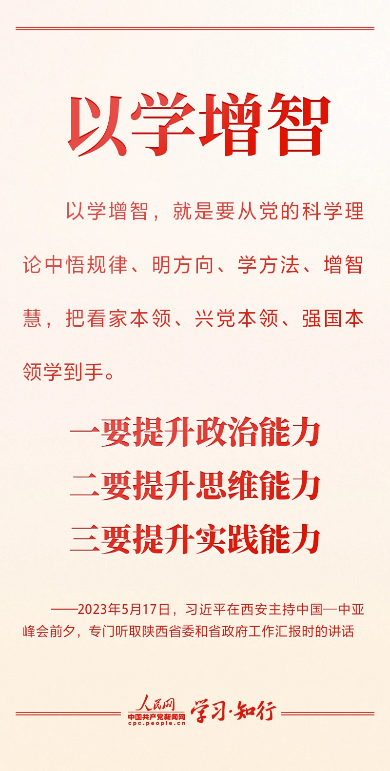 今年以來,習(xí)近平總書記先后在廣東、陜西、內(nèi)蒙古、江蘇等地考察調(diào)研,分別對主題教育根本任務(wù)中“以學(xué)鑄魂、以學(xué)增智、以學(xué)正風(fēng)、以學(xué)促干”四個方面作出深刻闡釋,四堂生動的黨課不斷推動主題教育深入開展、取得實(shí)實(shí)在在的成效。