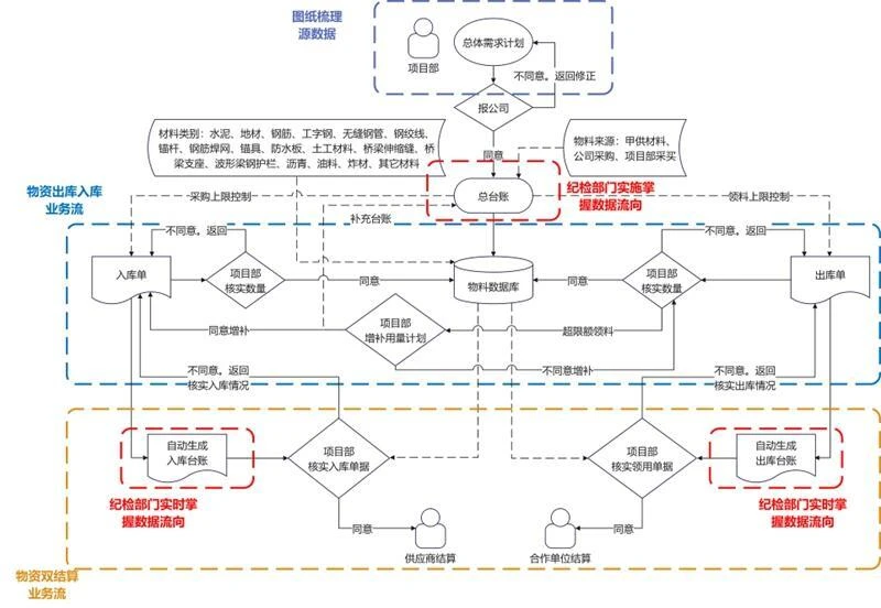 針對(duì)交通工程物資采購量大、種類繁雜、流轉(zhuǎn)環(huán)節(jié)多的特點(diǎn),公司紀(jì)檢監(jiān)察融入“物資全鏈條管理模塊”,實(shí)現(xiàn)從“申請(qǐng)—發(fā)貨—入庫—領(lǐng)用—清點(diǎn)”的全流程閉環(huán)管理。水泥、地材等主要建材的現(xiàn)場需求申請(qǐng)、供應(yīng)商溯源、發(fā)貨地、入庫時(shí)間、入庫數(shù)量、領(lǐng)用時(shí)間、領(lǐng)用數(shù)量及領(lǐng)用人等信息均實(shí)現(xiàn)全過程留痕記錄。