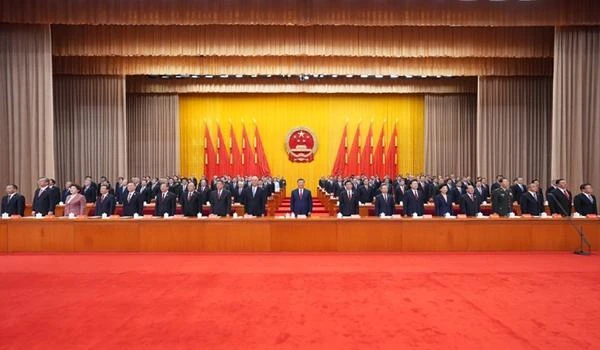 上午10時30分許,在歡快的樂曲聲中,習近平等領(lǐng)導(dǎo)同志走上主席臺,全場響起長時間的熱烈掌聲。
