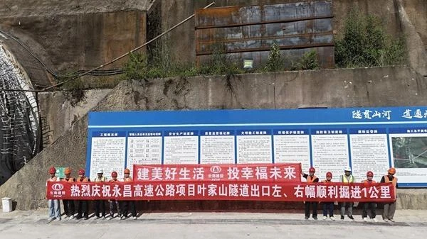 10月21日,永昌高速公路葉家山隧道出口左幅、右幅均順利掘進1000米,為隧道順利貫通奠定了堅實基礎(chǔ)。