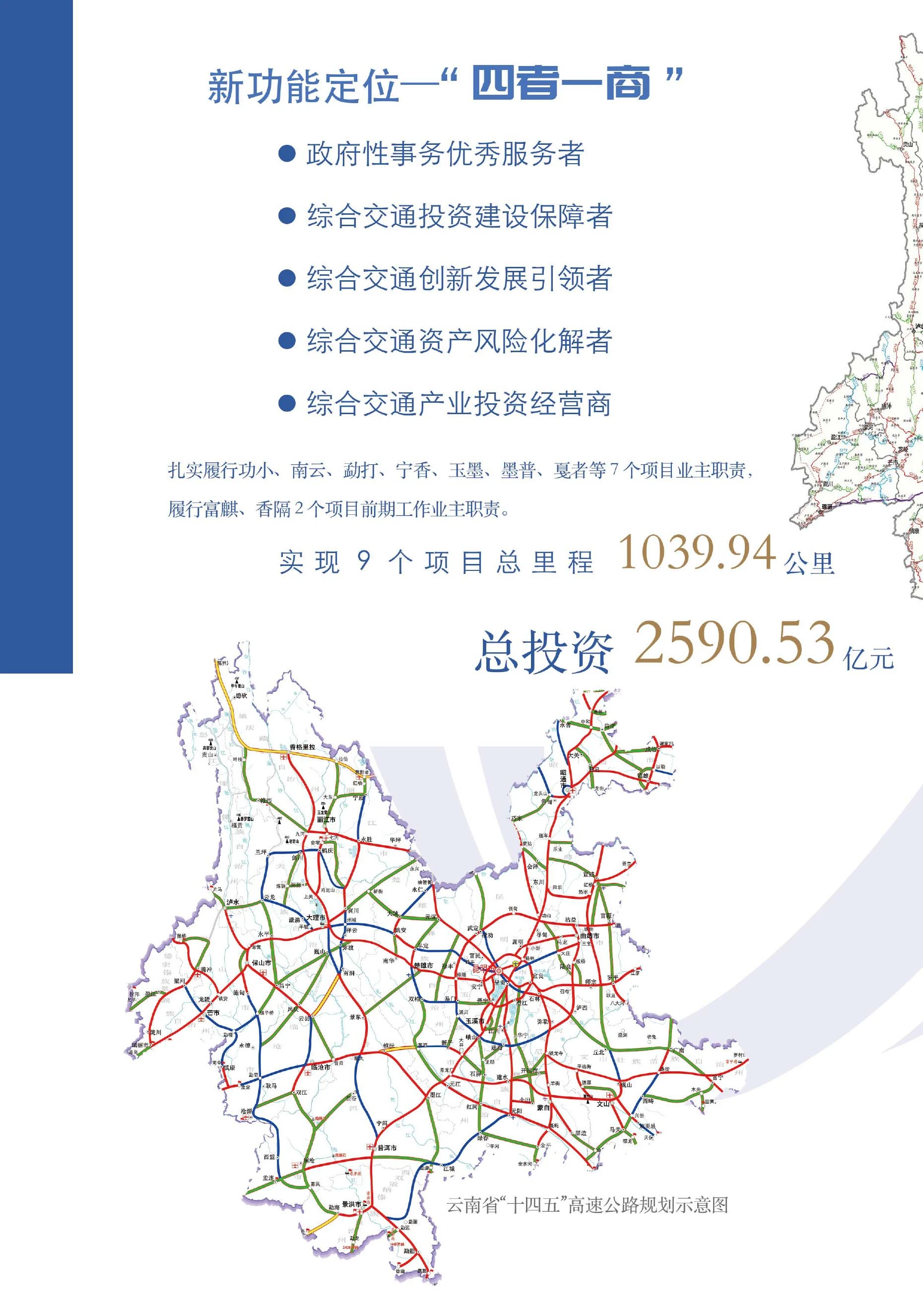 云南交發(fā)項目管理有限公司成立于2017年12月11日,注冊資本金為10億元。公司定位為功能性單位,重點聚焦做好項目前期、PPP項目監(jiān)管政府性事務工作。目前主要負責推進玉墨、墨普、富麒、戛者及寧香5 條國高項目的工可階段前期工作,承擔香麗、華麗、保瀘、墨臨、彌玉、玉楚、昆楚、楚大、瑞孟、勐綠共10個省級事權高速公路PPP項目的政府出資人監(jiān)管及南云、勐打、功小共3個“BOT+股權合作”項目的監(jiān)事會辦公室管理工作,同時開展?jié)櫝堑诙蟮?號寫字樓租賃業(yè)務。
